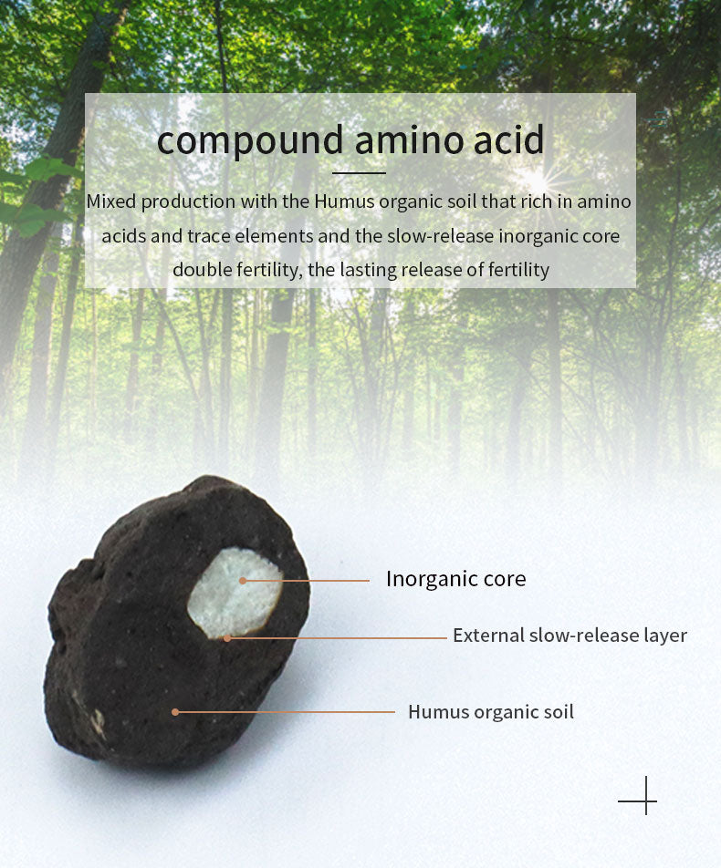 Ingredients: Humus organic soil, amino acid, and slow-release inorganic core